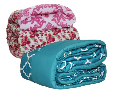 PACK DE 5 ACOLCHADOS DE 2 PLAZAS , DOBLE FAZ, ESTAMPADOS, DIFERENTES DISEÑOS DE CADA LADO . MEDIDA: 2,00X2,40MT. RELLENO DE GUATA VIRGEN DE 180 GRAMOS REFORZADO EN LAS PUNTAS PARA QUE TENGAN PESO.